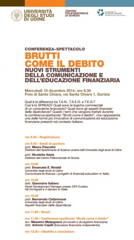 Arriva all'Universita' di Udine, polo di Gorizia "Brutti come il debito", la conferenza spettacolo che spiega la finanza personale.